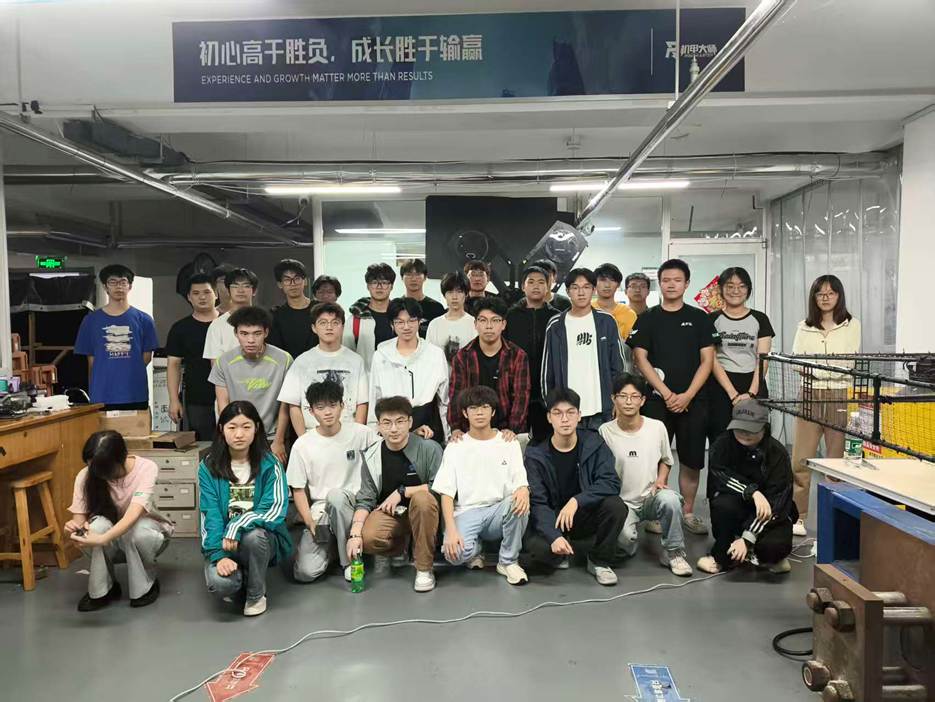 10 月 4 日 9:00-12:00,战队一行 60 人赴中国石油大学(华东),与该校机甲大师战队开展深度技术交流。座谈会上,双方围绕赛事规则解读、机械结构轻量化优化、电控系统稳定性调试、视觉算法目标识别精度提升等核心议题展开讨论。针对 “机器人运动中零件磨损”“赛事突发故障应急处理” 等实际备赛难题,两校队员分享各自解决方案,现场碰撞出多个技术创新思路。随后,战队参观了中国石油大学机甲大师战队实验室,近距离观摩赛事装备调试流程,学习其 “分工明确、高效协作” 的团队管理模式与设备维护技巧,队员们认真记录技术要点,不时驻足请教,收获满满。