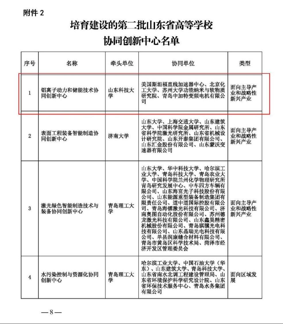科研平台:山东省铝离子动力和储能电池协同创新中心