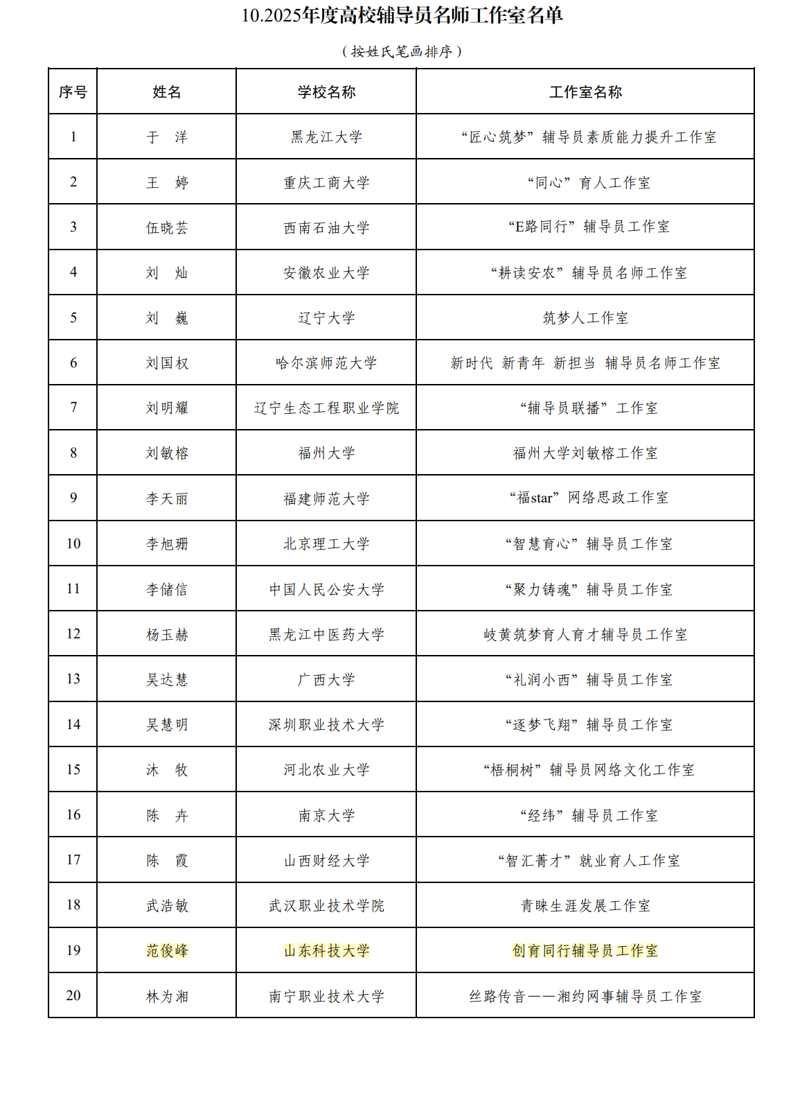 全国高校辅导员名师工作室:创育同行辅导员工作室