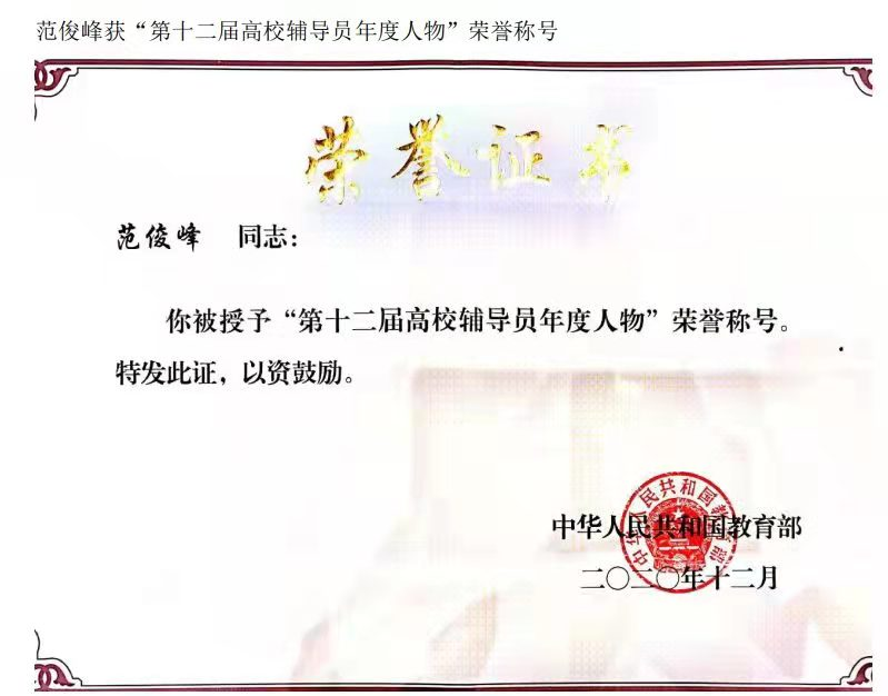 第十二届“高校辅导员年度人物”范俊峰