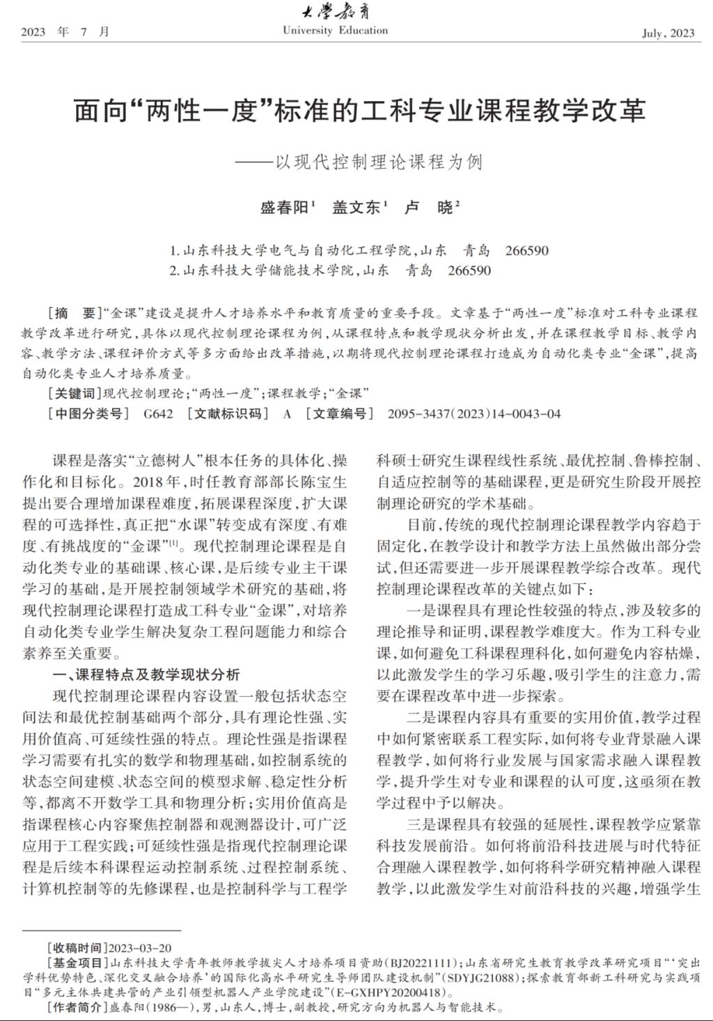12 面相“两性一度”标准的工科专业课程教学改革