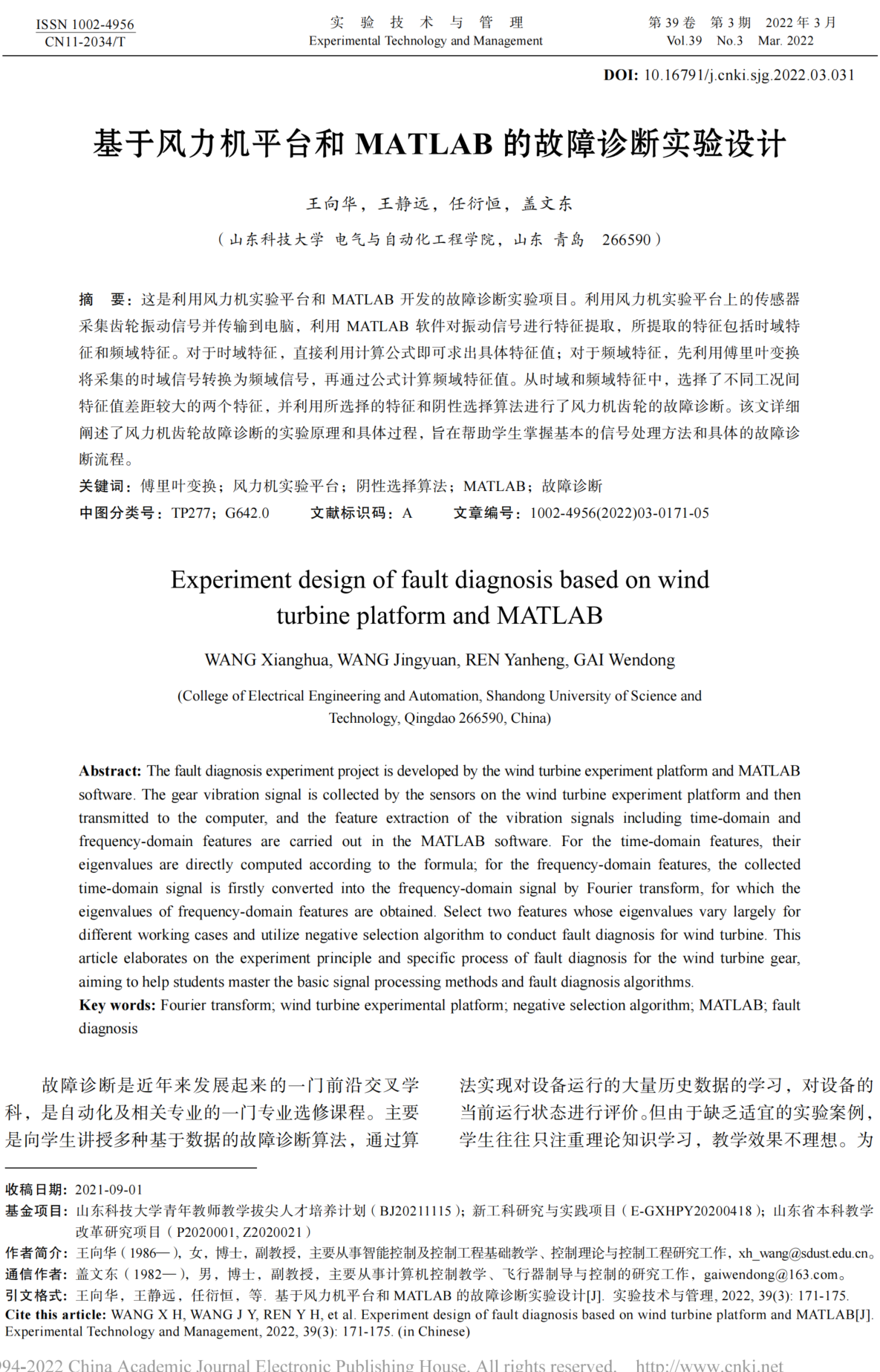 19 基于风力机平台和MATLAB的故障诊断实验设计