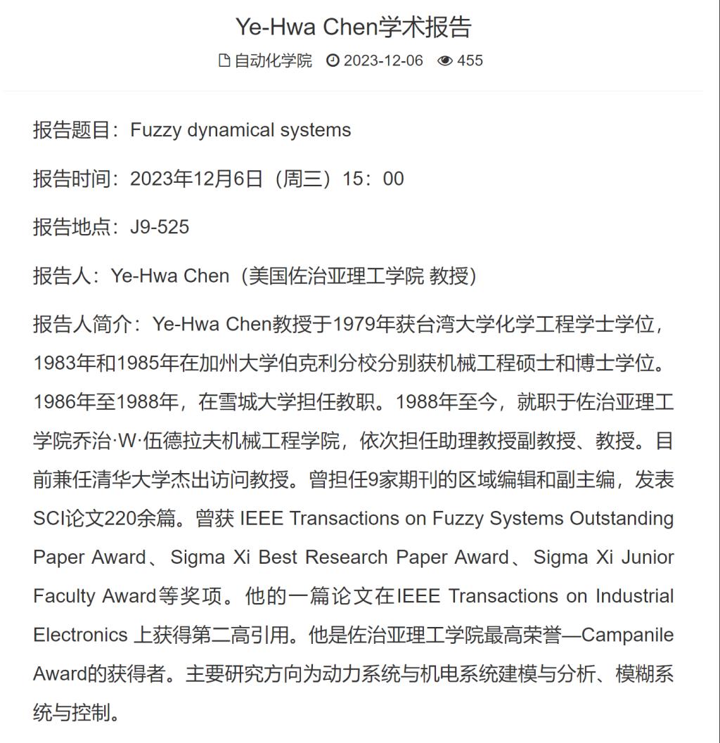 代表性学术报告2 Ye-Hwa Chen学术报告